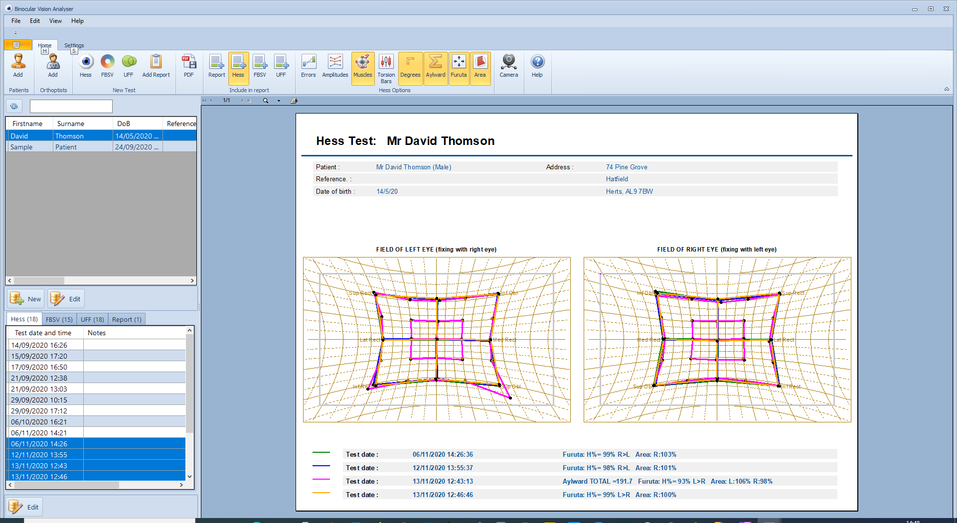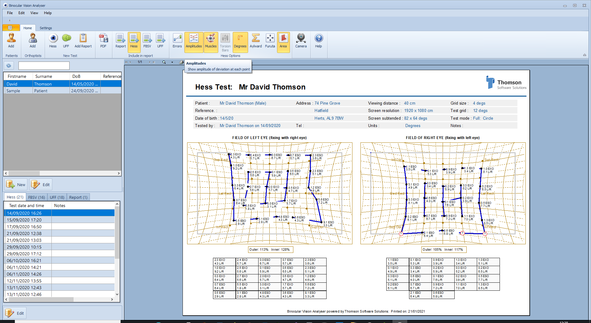 The patient's details are shown above the charts and the test conditions are shown below the charts.