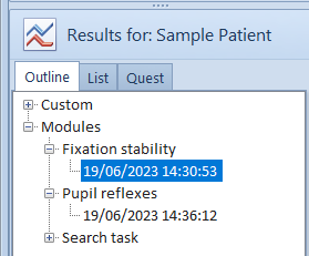 To display the Fixation Analysis report, select Modules ... Fixation stability and select the result from the list.