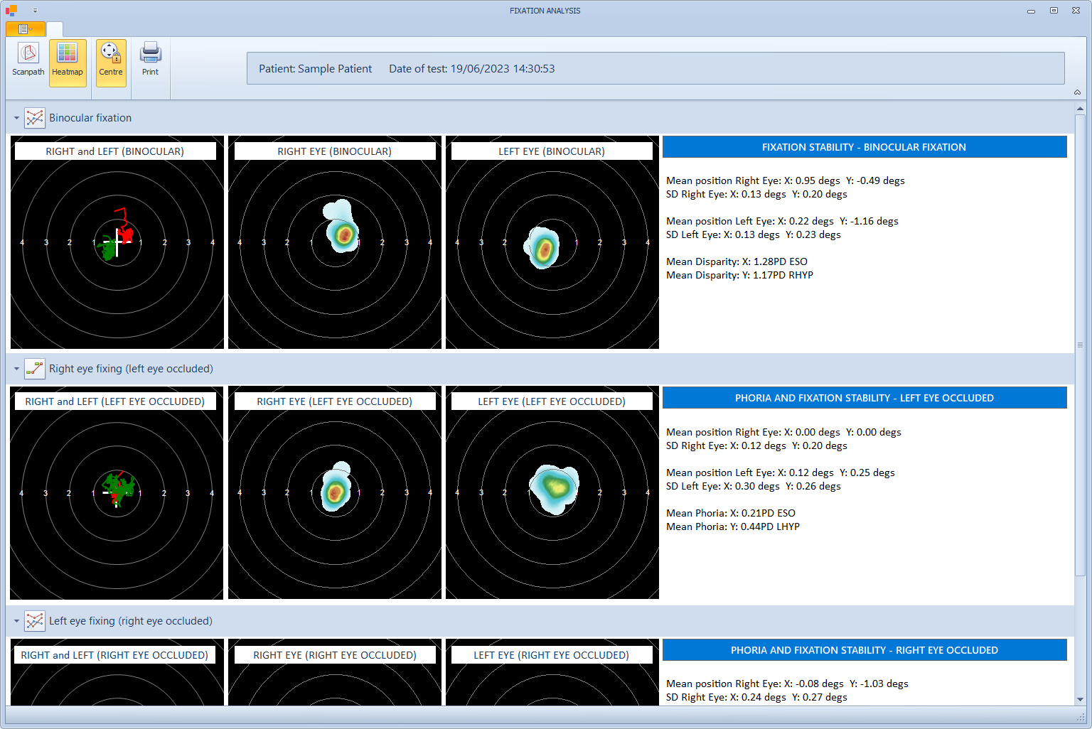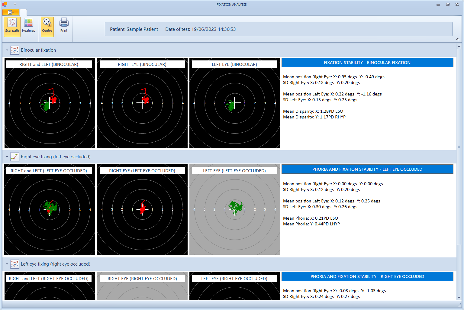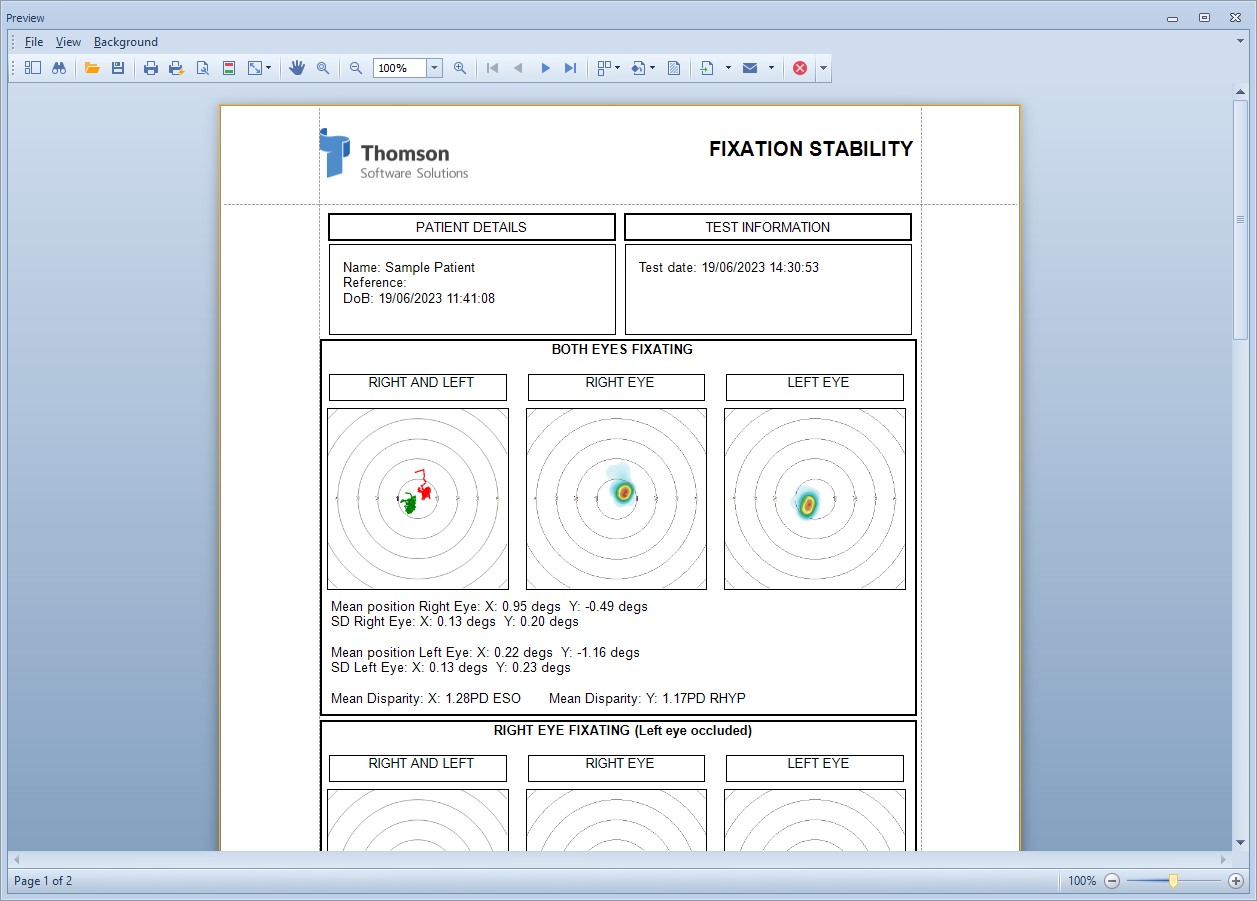 A bespoke report show the Fixation stability results can be created by selecting Print from the toolbar.