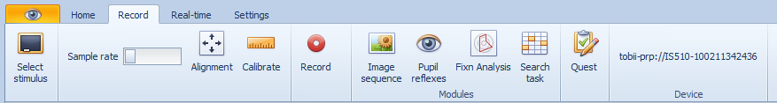 To run the Fixation Analysis module, select the Record tab at the top of the control screen and select Fixn Analysis.