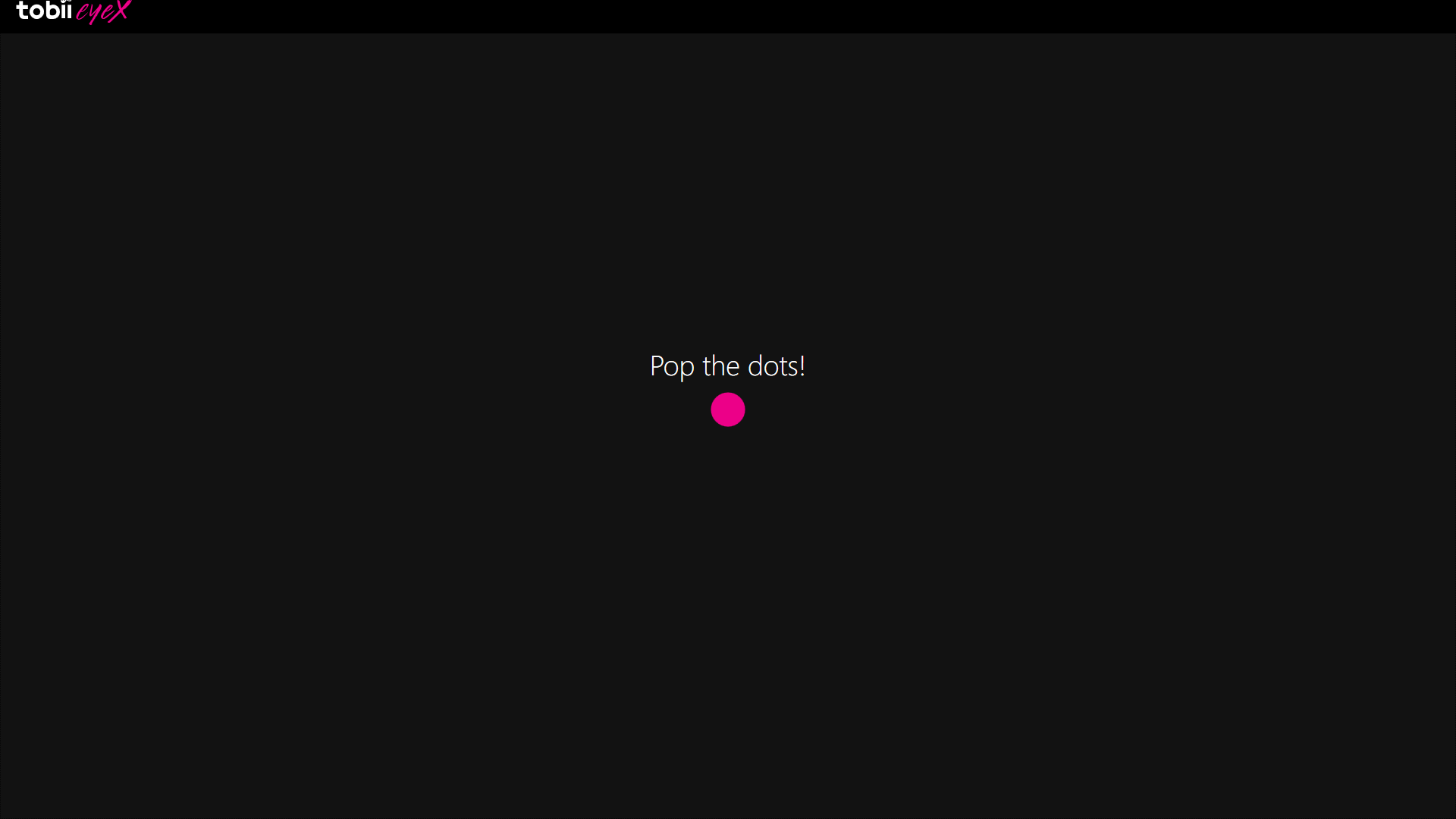 A series of dots when then appear in different parts of the screen. The patients should be encouraged to keep their head still and look towards each dot (in any order). When they fixate on the dot it will start to spin and the "pop".