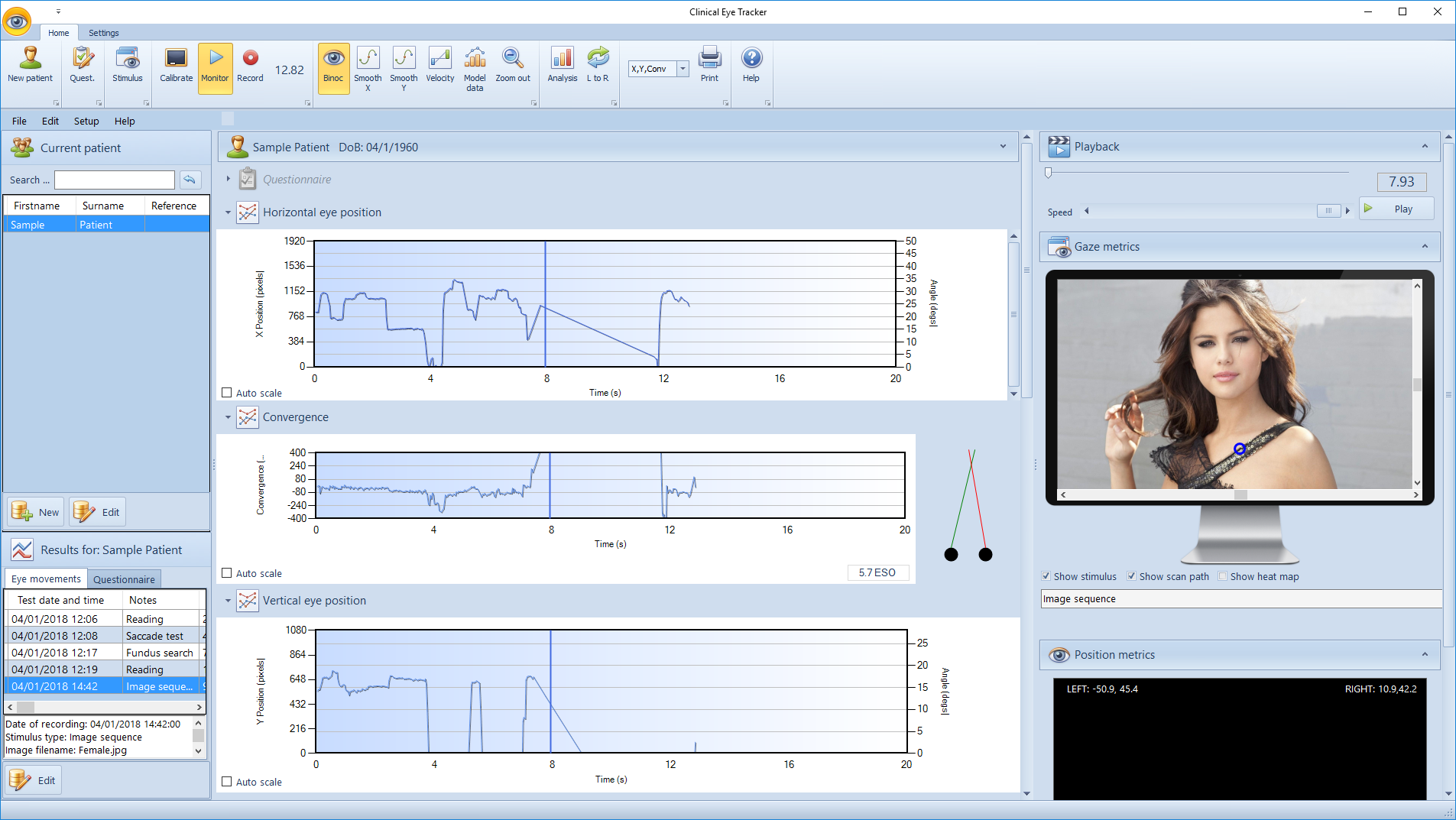 To stop monitoring eye movements, de-select Monitor on the toolbar.