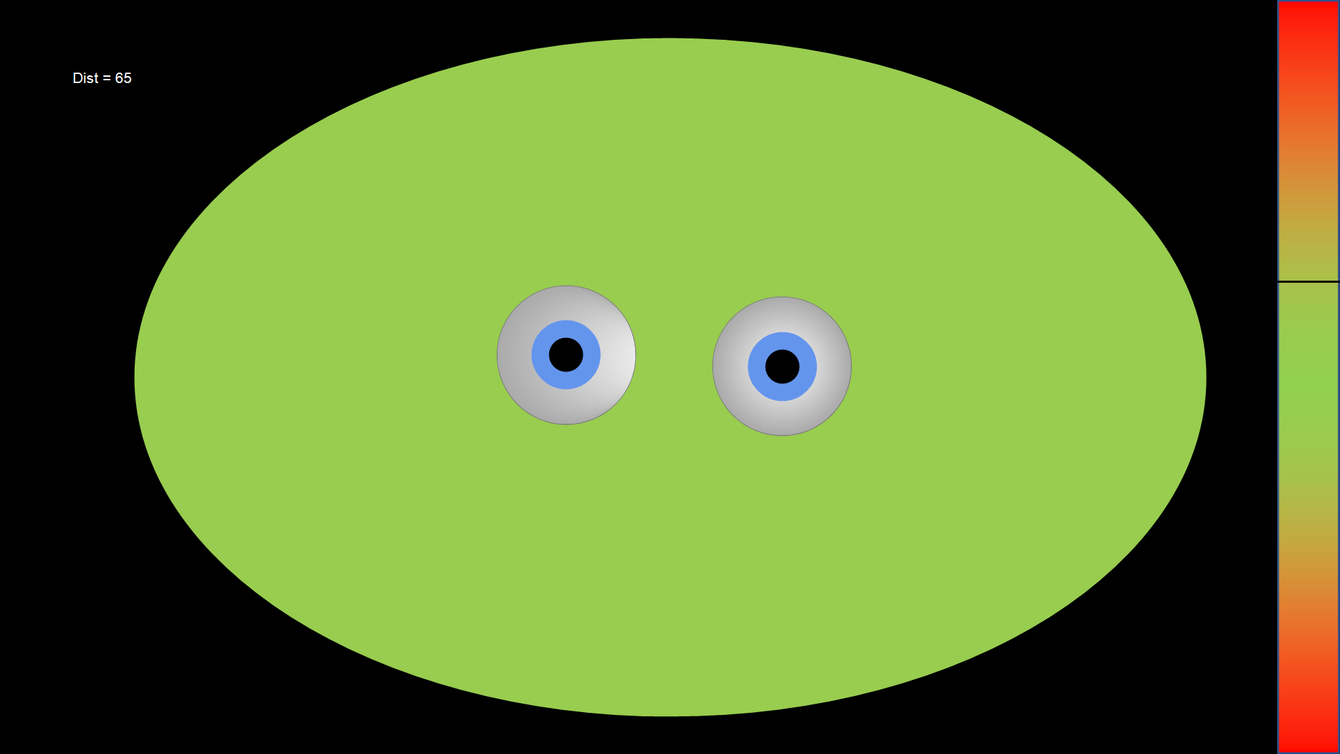 In Alignment mode, a representation of the patient's eyes will be seen on the screen against the background of a coloured ellipse. The ellipse will be coloured green when the patient is at the optimum distance and will be orange/red if the patient is too close or too far away.