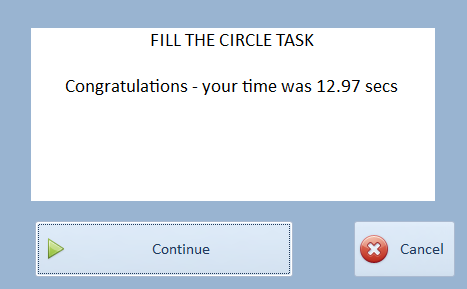 The Circles task starts an interactive "game" which records the time taken for a patient to fixate within each circle in an array