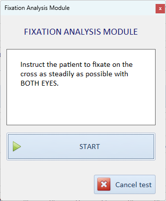 Follow the Instructions on the screen and instruct the patient to fixate the cross as steadily as possible with BOTH EYES.