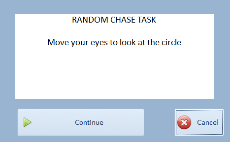 The Random task starts an interactive "game" which records the time taken for a patient to fixate within circles presented in random locations on the screen.