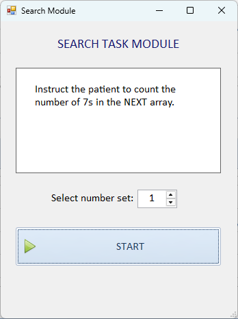 Explain to the patient that their task is to count the number of times a certain number appears in the table of numbers on the screen. Instruct the patient to tell yo as soon as they have finished counting.