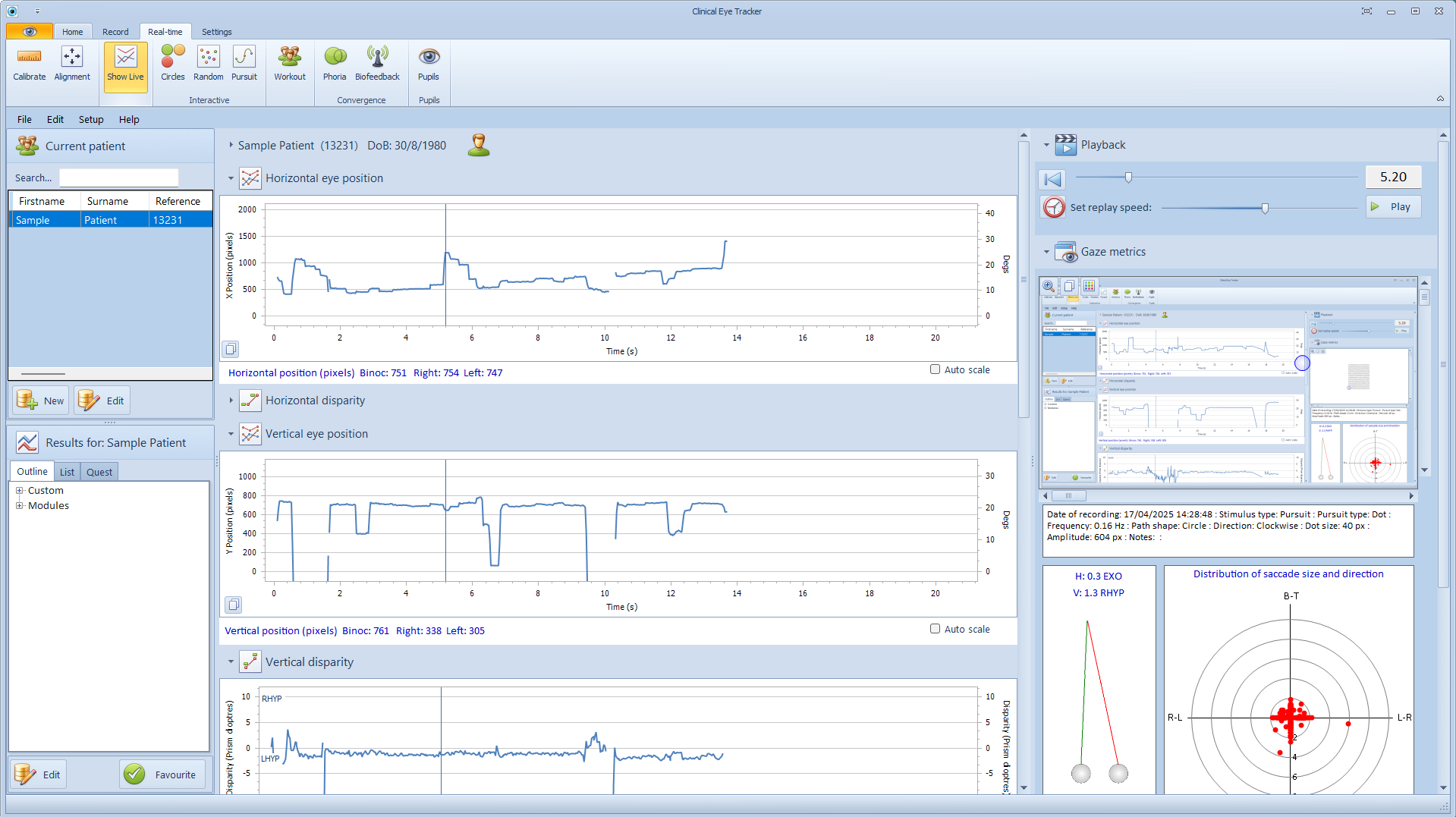 This will display the current gaze position on the test screen as shown below: