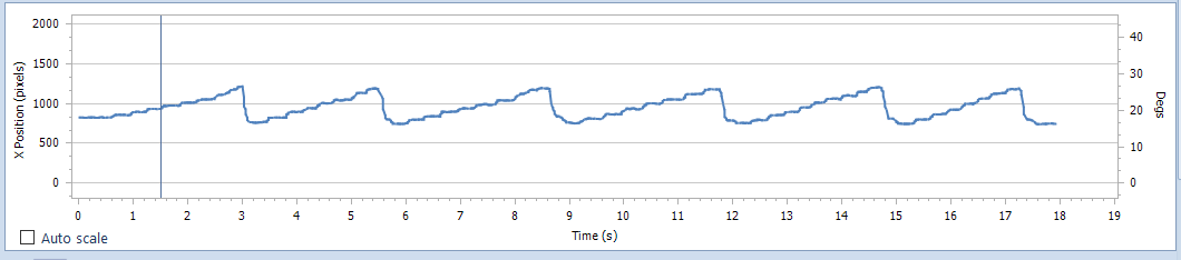 By default, Binocular Gaze position is shown. This is calculated from the mean gaze position of the right and left eyes. These data are generally less noisy than the monocular data and it is recommended that this is used for a general analysis of eye position during scanning tasks and reading.