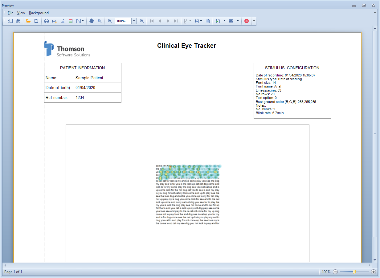 This will display a Print preview screen as shown below. This allows various print options to be set before printing. It also allows the report to be saved as a pdf, an image or various other formats, and automatically emailed.