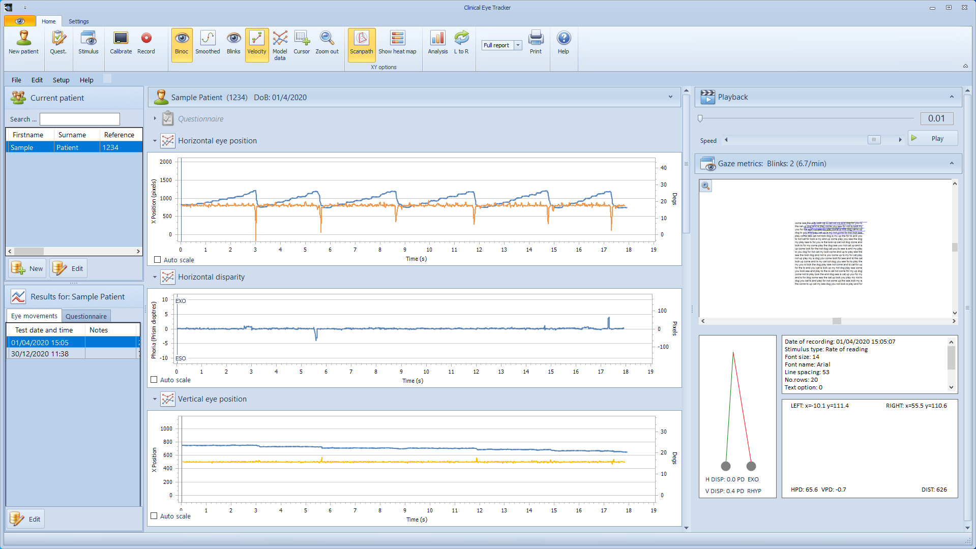 The velocity trace is useful for detecting saccadic eye movements and is used as part of the algorithm for creating the Model Gaze trace.