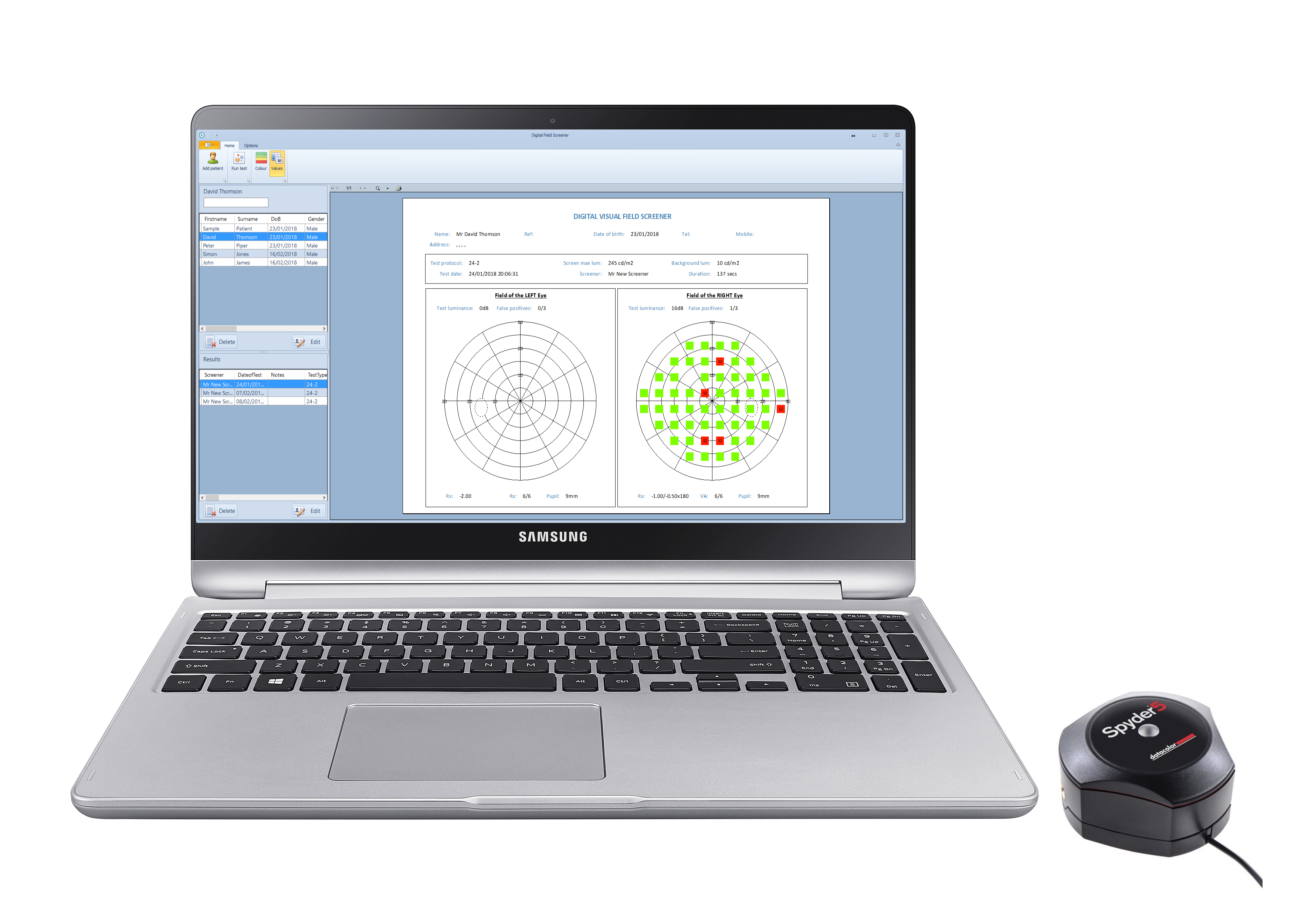 The Digital Visual Fields Screener has come about at the request of numerous Optometrists and Ophthalmologists looking for a mobile visual field test. While there are a number of excellent visual field instruments available for the consulting room or clinic, these instruments are not easily portable. This has meant that those working in mobile clinics or carrying out domiciliary tests have had to rely on the confrontation test or rather crude card-based systems.