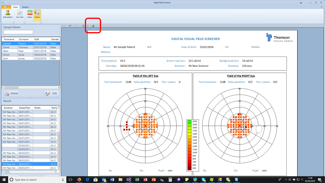 Displaying results Printing reports To print the current chart, click on the printer icon in the toolbar directly above the print preview window. This will display the Printer select dialog window.