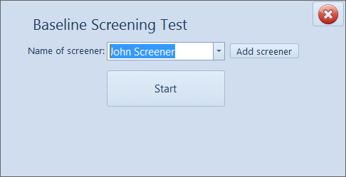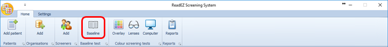 The first stage in the screening process is to determine the baseline for symptoms and Reading Speed against a white background. To do this, first select the patient's name from the list. The Baseline button in the toolbar will then become enabled as shown below: