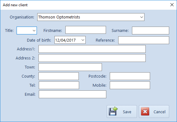 To add a new patient click the Add patient button in the Patients group as shown above.This will display the dialogue window shown below: