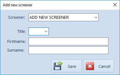 The software maintains a record of who performs the screening test. To facilitate this a table of Screeners is maintained - there must be at least one Screener registered.