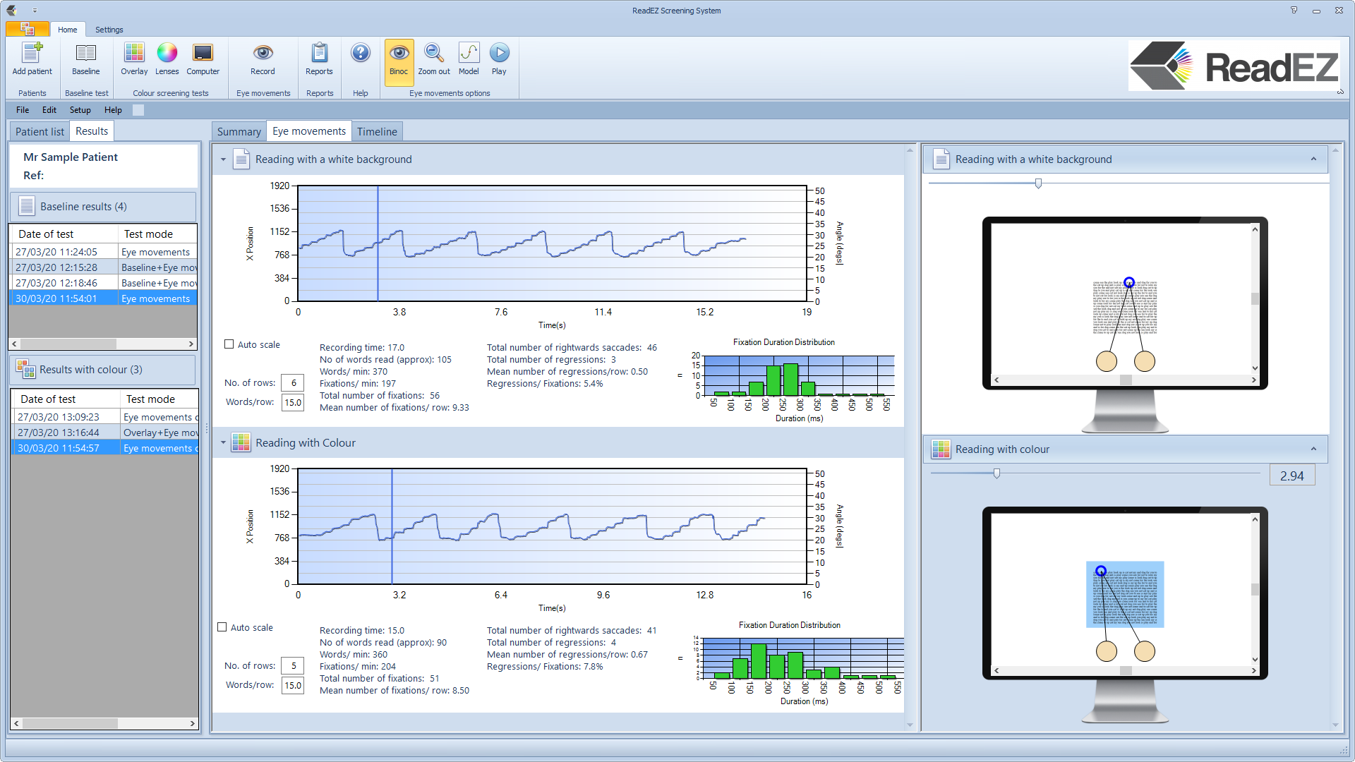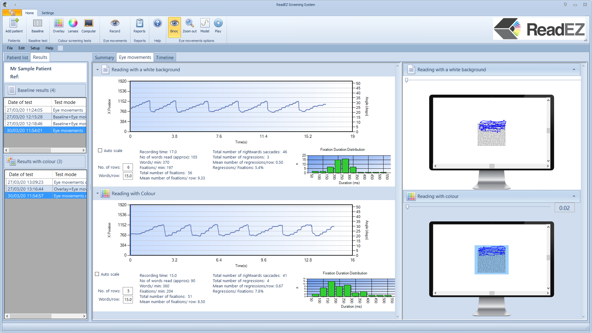 The central panel shows the horizontal eye movements for Baseline and Colour along with some summary statistics.