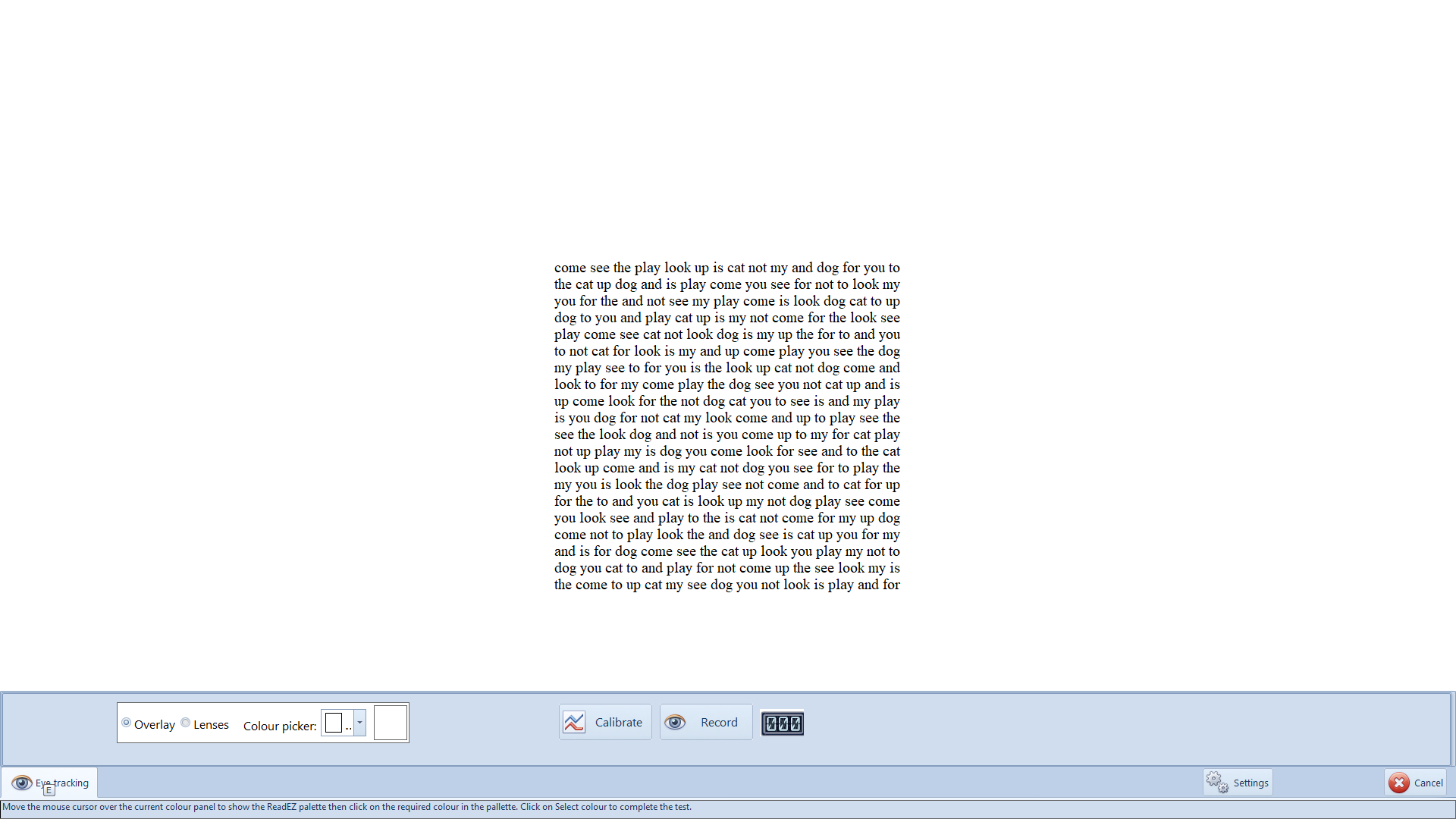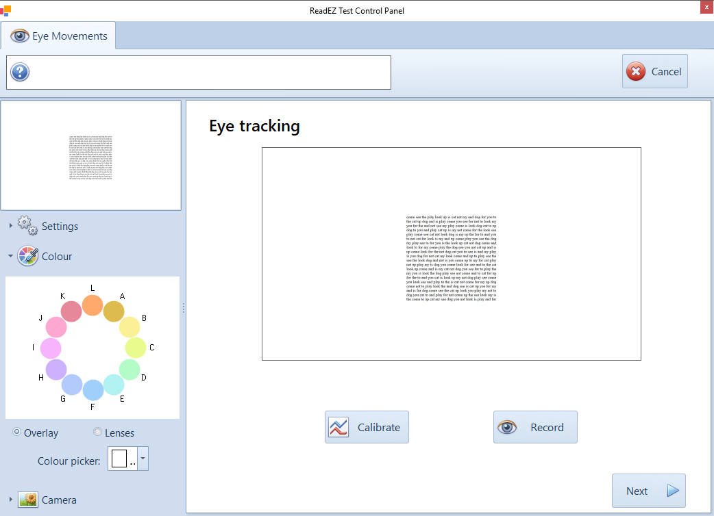Eye movements may be recorded as part of a Baseline or Colour test or as a Standalone test.
