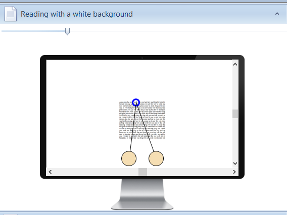 The blue circle shows the gaze position at the moment in time. This format is very useful for demonstrating to patients/ parents of patients, a change in the pattern of eye movements as a result of an intervention.