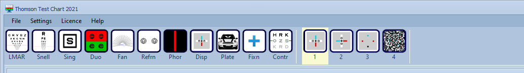 The Fixation Disparity tests are displayed by selecting the Disp icon on the Primary toolbar, pressing F7 on the keyboard of selecting Fix Disp on the remote control handset.