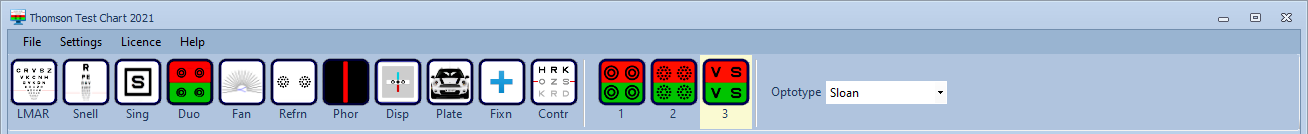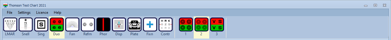 A variety of targets can be displayed against the duochrome background. These may be selected using the Secondary toolbar: