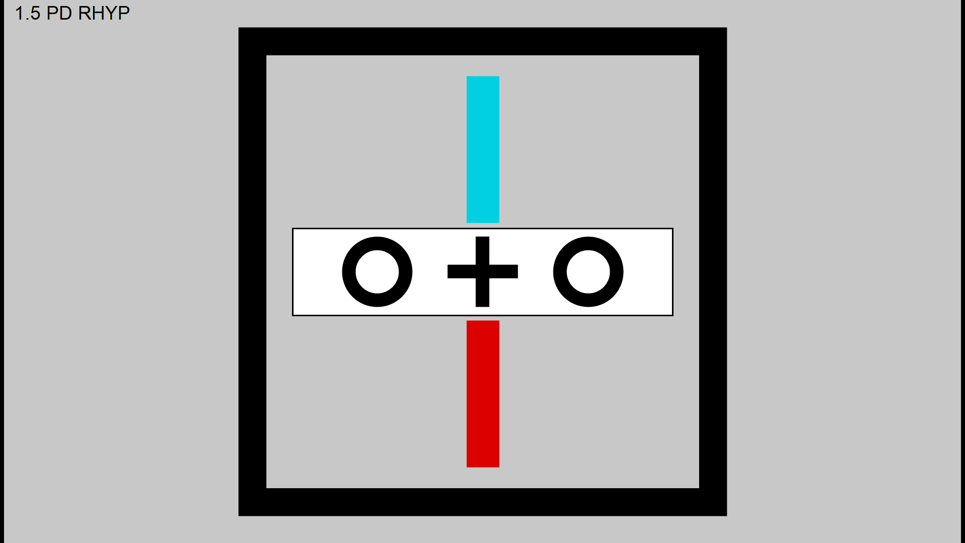 The patient views the screen binocularly through the red and green filters. The entire field except for the two monocular markers, is seen binocularly. The patient is asked to look at the cross in the centre and report if the markers above and below the cross are in a straight line. If they are misaligned, appropriate prisms or lenses are used to align them in the normal manner.
