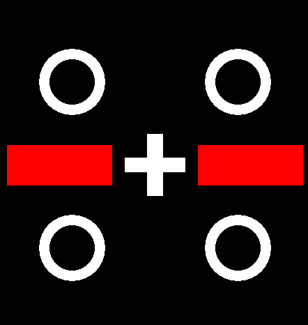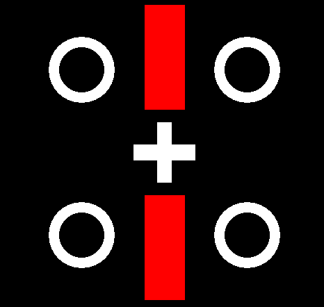With the polarised visor placed in front of the patient's eyes, one vertical and one horizontal red bar is seen by right eye and the others by the left eye while the rest of the screen and the surround is seen binocularly.