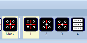 There are three fixation disparity options available with the Polarised Mask. These are selected by selecting the corresponding icon in the Secondary Toolbar or by pressing 1, 2 or 3 on the keyboard or the remote.