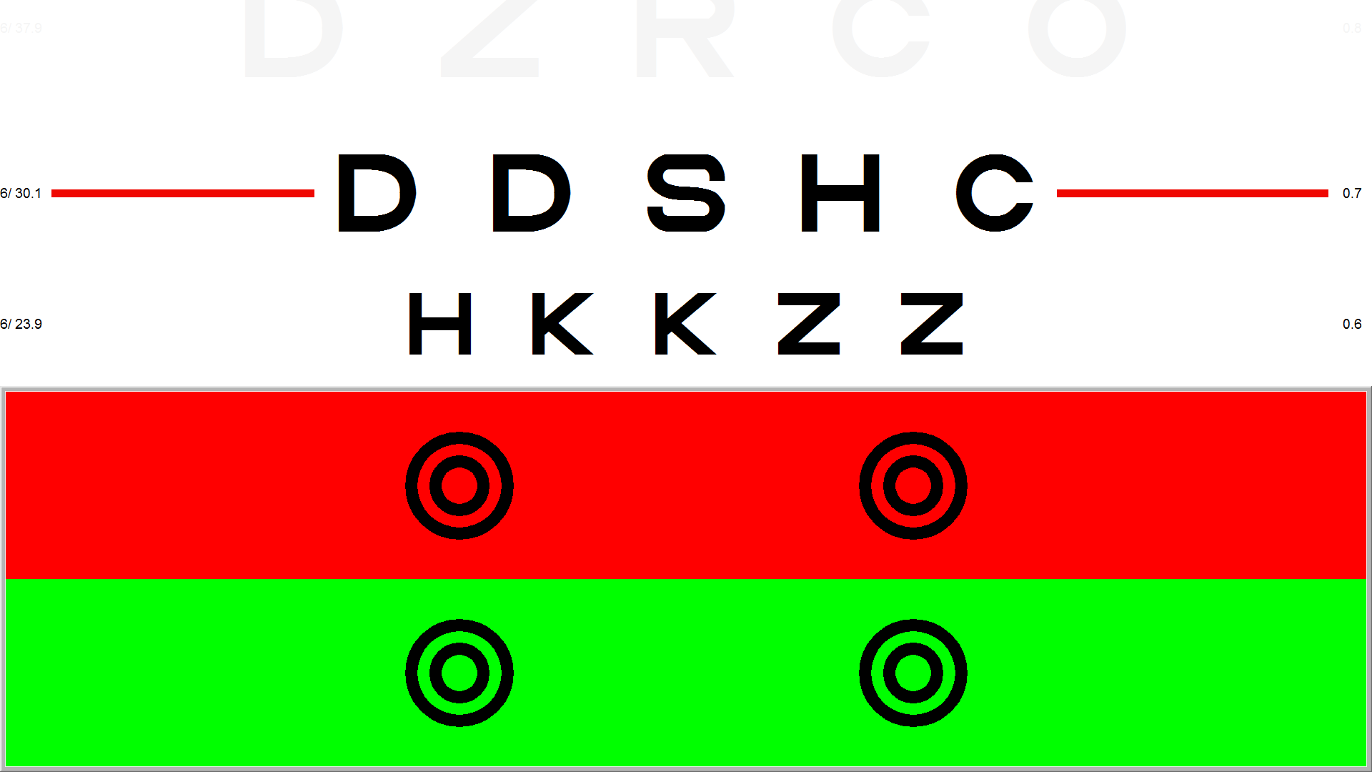 The Thomson Test Chart allows the screen to be split Horizontally or Vertically (as shown below):