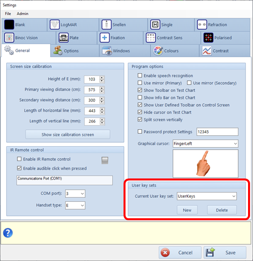 Stimuli viewed via a mirror will, of course, be horizontally reversed. To resolve this, the Thomson Test Chart is capable of "mirroring" each screen so that they are the correct way round when viewed in a mirror. This option is activated by ticking the Use Mirror check box.