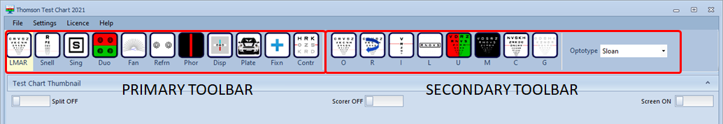 The Thomson Test Chart may be controlled using a mouse by means of the Toolbars.