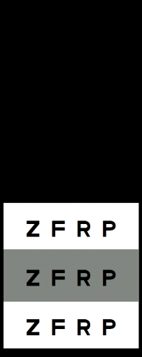 This displays letters and other optotypes in three “windows” at the bottom of the polarised mask.