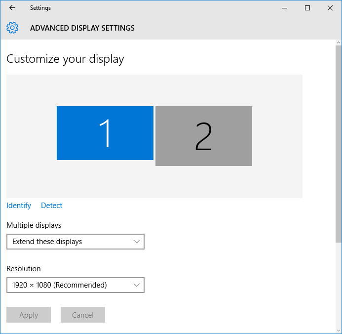 The properties of each display (resolution and colour quality) can then be adjusted independently.