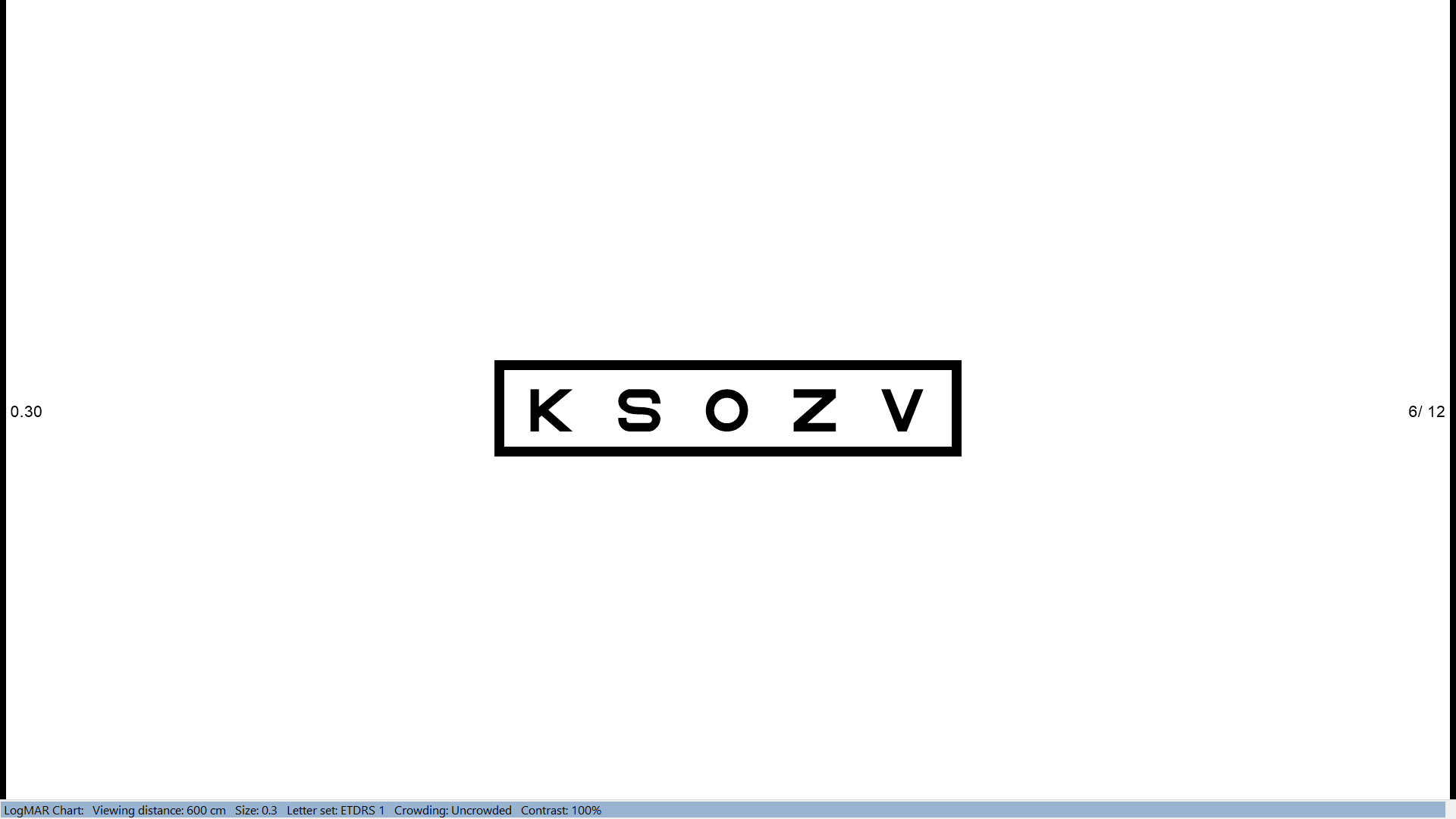 By default, the Thomson Test Chart will display as many rows as will fit on the screen. However, it is sometimes useful to isolate one or two rows particularly when testing children. The Thomson Test Chart is able to isolate 1 row with crowding, and 1 , 2, 3 or 4 rows without crowding bars as shown below: