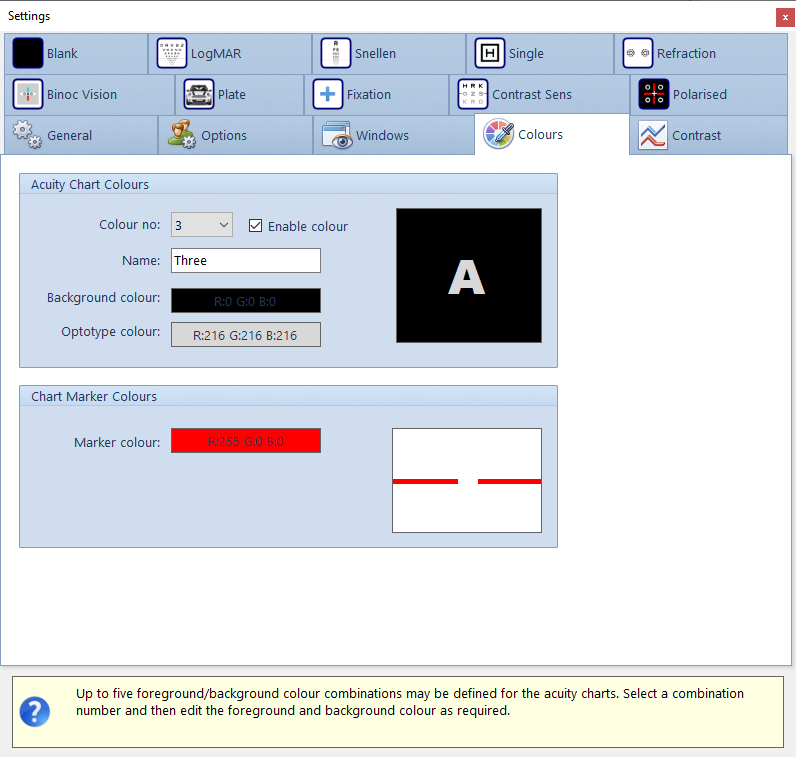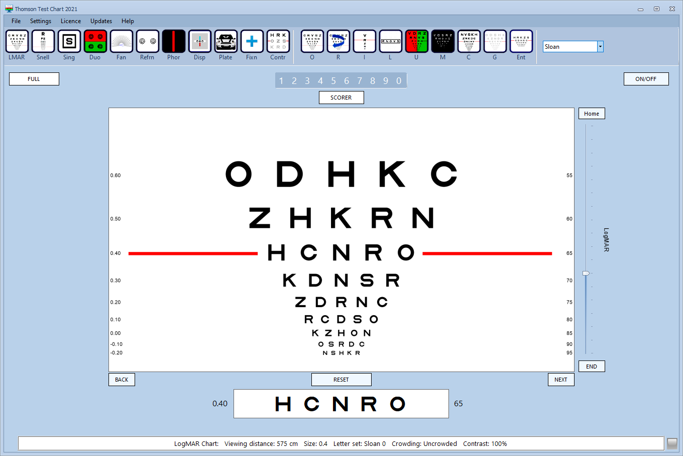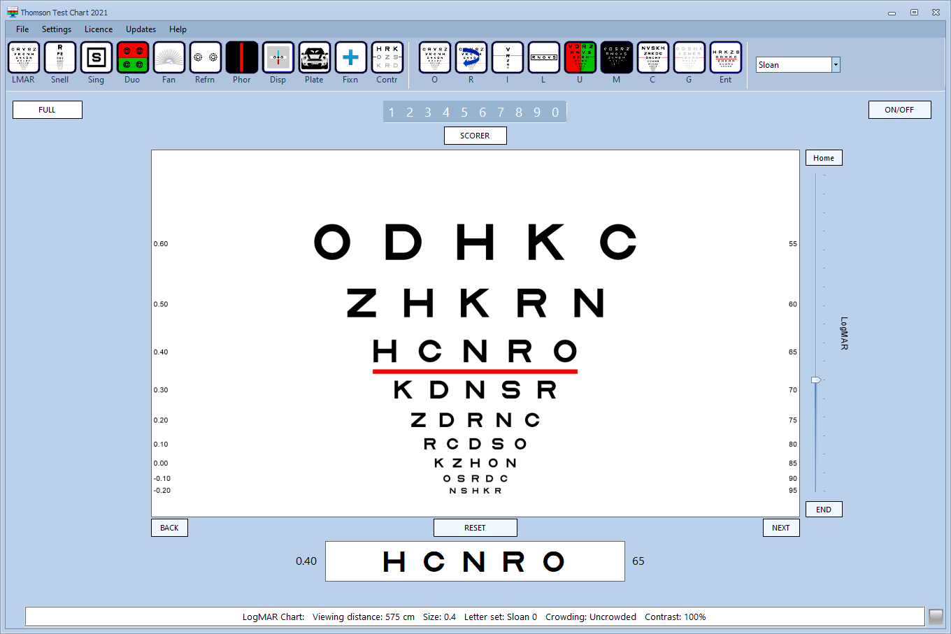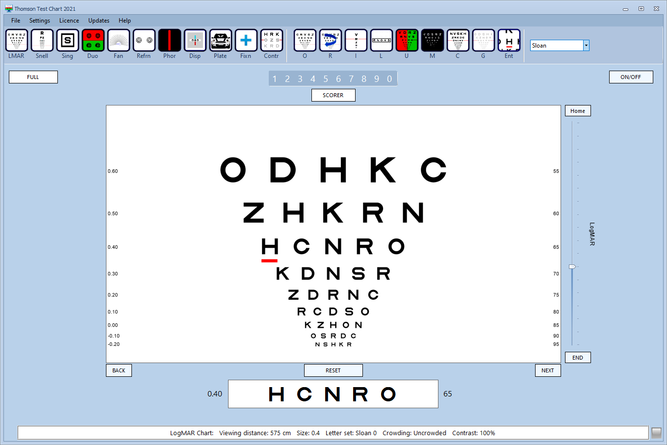 Right clicking on a specific row of letters on the Test Chart will make that row the Current row.