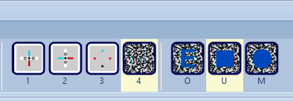 The three stimuli may be selected by clicking on the corresponding icon in the Secondary Toolbar or by pressing O, U and M respectively on the keyboard or remote.