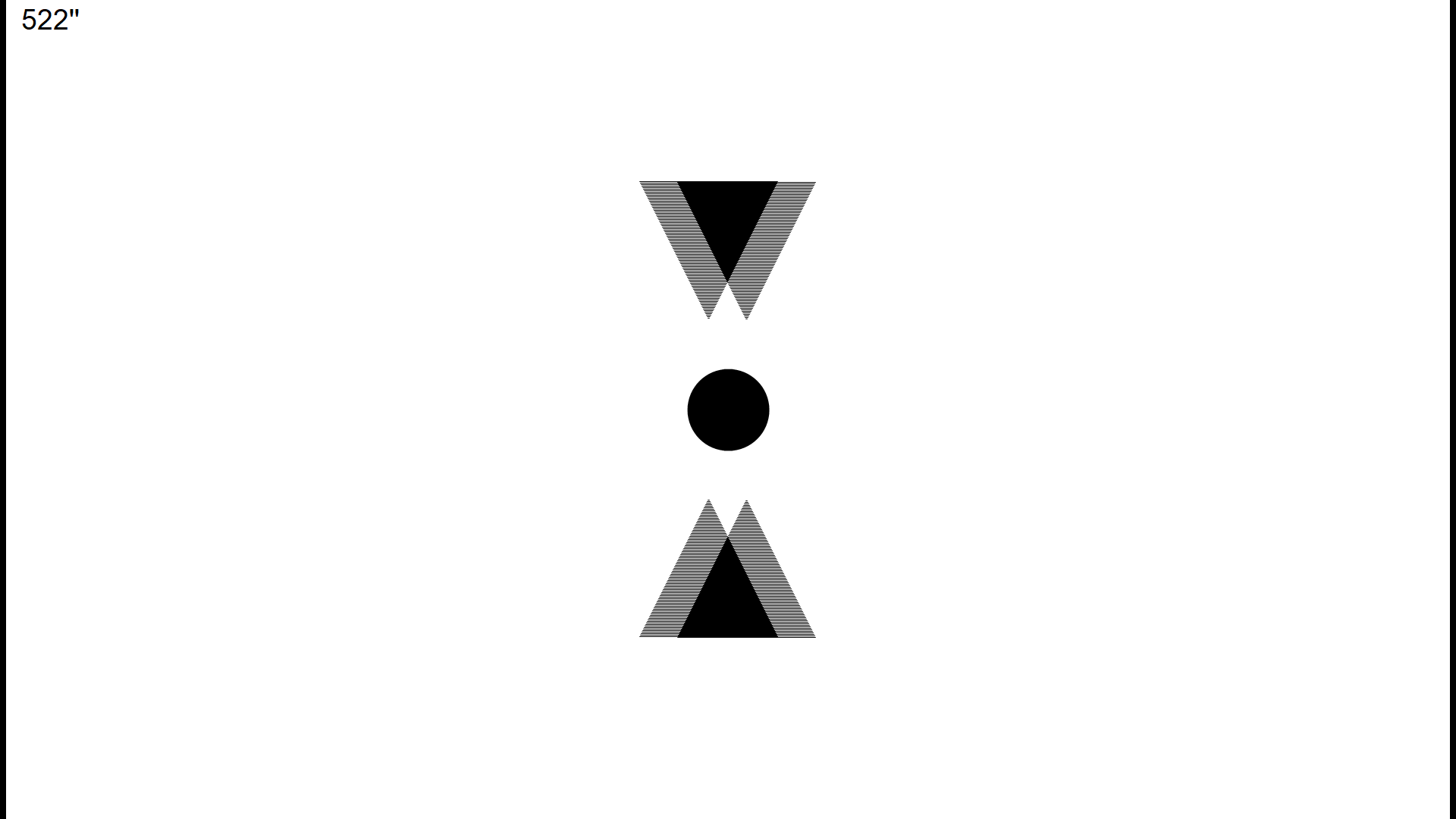 This test measures distance stereopsis. One eye sees one pair of triangles while the other sees the other pair. The central circle is seen binocularly.